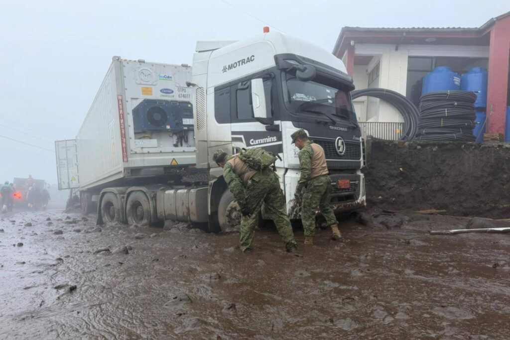 El aluvión provocó el cierre de tramos de la vía E35 y afectó la circulación en la vía Riobamba–Cuenca, que permanece parcialmente habilitada mientras avanzan las labores de limpieza, según el ECU 911.