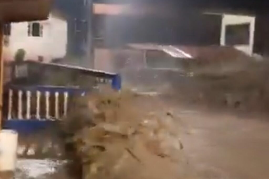 Un torrente de lodo y escombros invadió con mucha fuerza las calles de la parroquia. Un video mostró el temor de los moradores cuando vieron que el agua entró con fuerza a las calles.