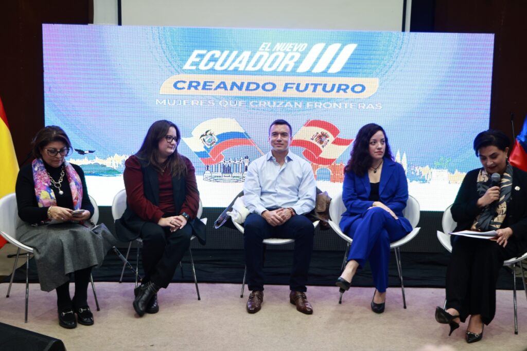 Daniel Noboa presentó en Madrid más de 19 000 becas y 1 500 cursos para jóvenes y mujeres migrantes.